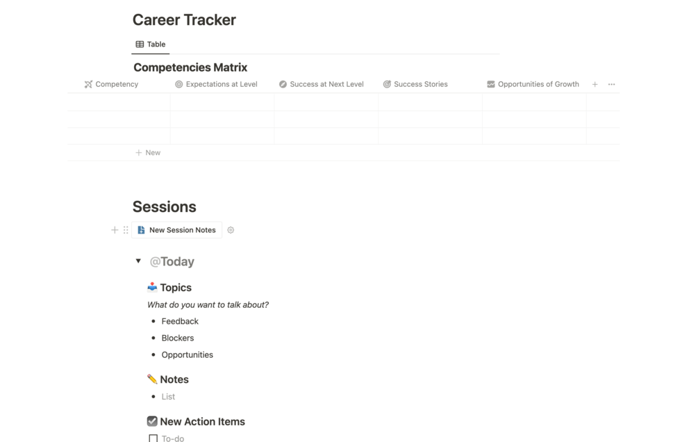 A full template for tracking 1:1 conversations with your teams.